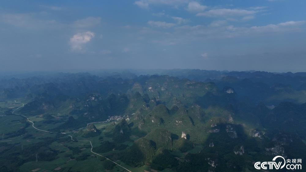10月11日,广西柳州融安县沙子乡,连绵起伏的山峦被秋意晕染,层林尽染间尽显原生态之美,宛如一幅立体的“千里江山图”。