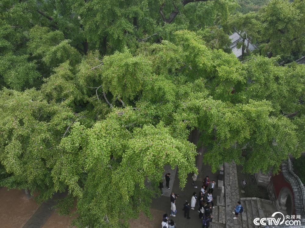 10月11日,山东日照,外国友人在莒县浮来山定林寺内参观“天下银杏第一树”。