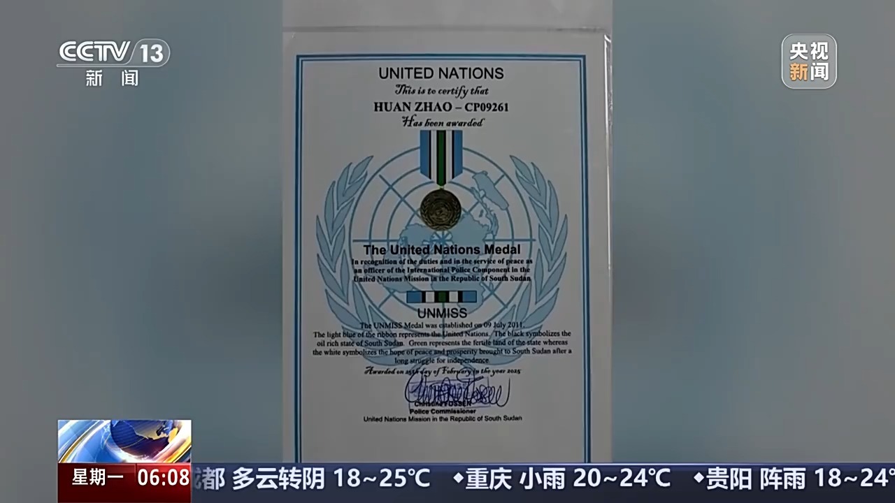 今年8月,维和任务期满,赵欢获得联合国“和平勋章”和卓越成就奖。在任务区仅有2%的维和人员能同时得到这两个奖项。她说,只要祖国需要,她随时可以选择再次出征。