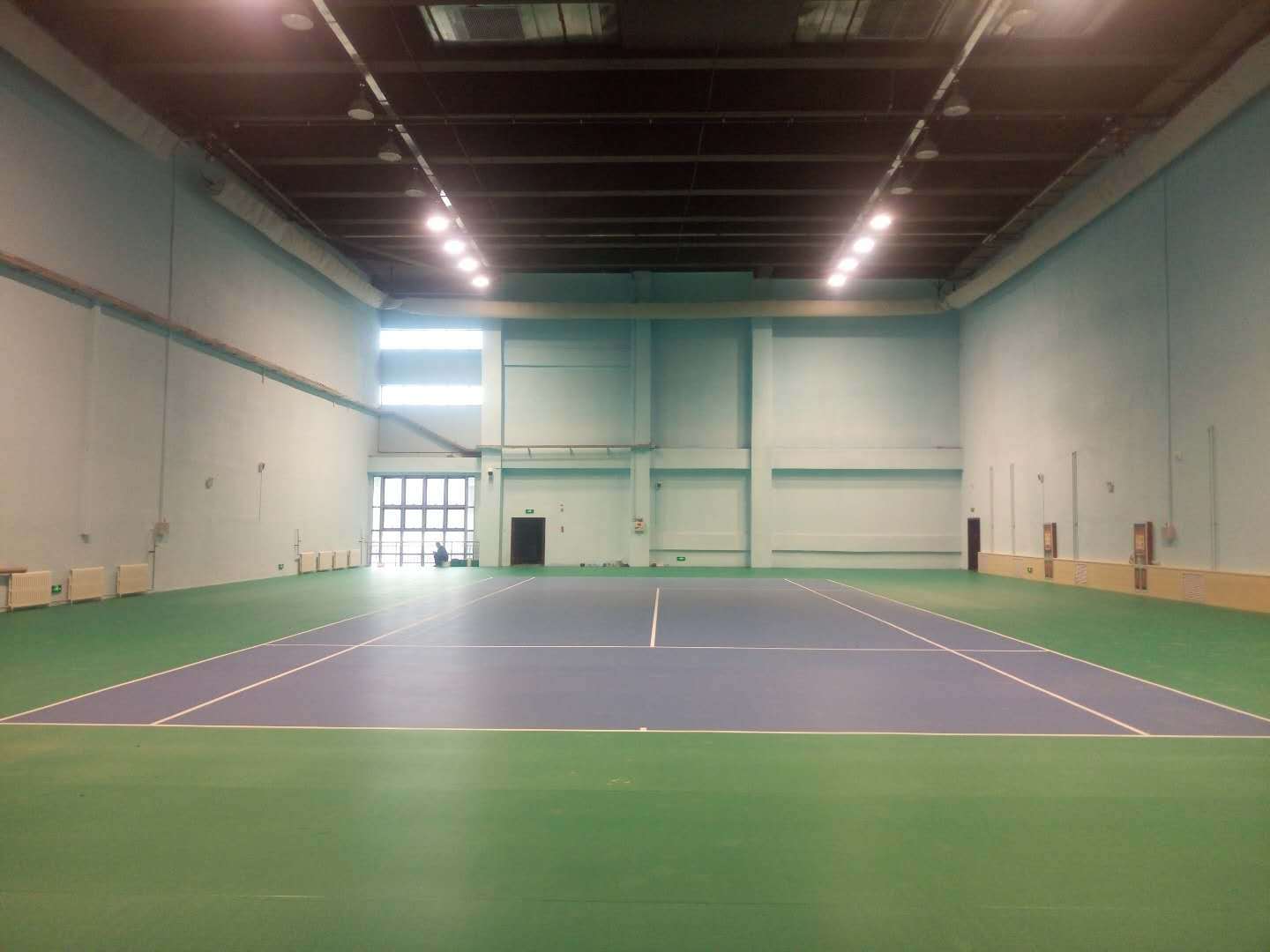 而在博州全民健身中心网球馆项目中,则采用了不同的方案——4.5mm厚沙地纹系列PVC运动塑胶铺设1000余平方米场地。这种材料兼具耐磨性与适度缓冲,能够满足日常训练和业余比赛的需求,更重要的是其维护便捷、性价比高的特点,让网球运动更加贴近普通爱好者。