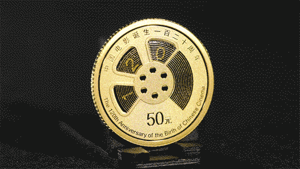 3克圆形金质纪念币,直径18毫米,面额50元,最大发行量2万枚。背面图案由胶片放映盘装饰造型、数字“120”等元素组合设计而成。