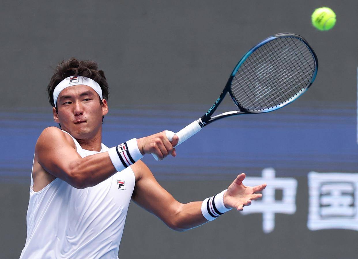 9月26日,在2025中国网球公开赛男单首轮比赛中,布云朝克特在比赛中回球。 新华社发(马子涵 摄)