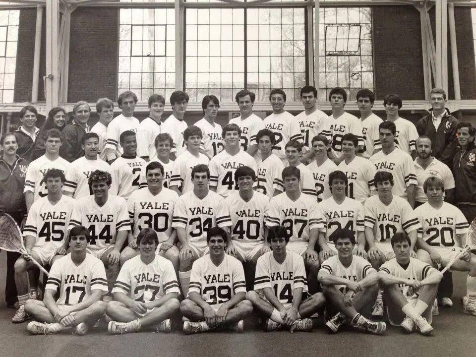 ▲1985年,蔡崇信跟耶鲁大学棍网球校队的队友们合影。第三排左数第三人为蔡崇信。