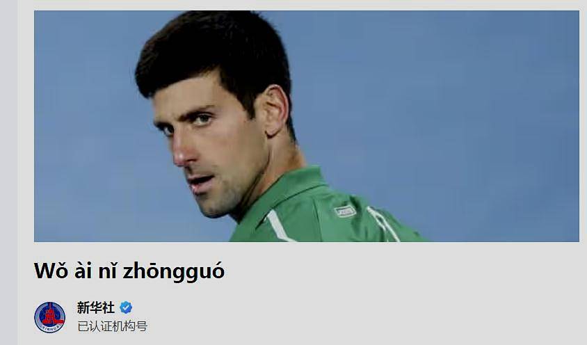 据查阅,新华社在公众号上单独为德约科维奇撰文的情况十分少见,即使是德约科维奇在巴黎奥运会上夺金,也只是发了综合消息。上一次单独发文,还是六年前新冠疫情时期,德约科维奇向中国给予他的祖国塞尔维亚提供帮助表示谢意,标题是“wǒ aì nǐ zhōng guó”。由此可见,中国的中央级官媒对德约科维奇在本届澳网展现的拼搏精神是十分赞赏的。