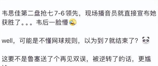 除此之外,除了组织和秩序方面存在着与四大满贯相比较大的差距外,中网工作人员的专业性也饱受诟病。几天前中国选手韦思佳与鲁塞的比赛中,当双方打到抢七时,韦思佳率先拿到7分,比分7-6,现场播报员竟然错误宣布比赛结束,导致场上出现混乱。主裁判及时纠正错误并重启比赛,最终这一错误影响了鲁赛的发挥,导致韦思佳获胜。