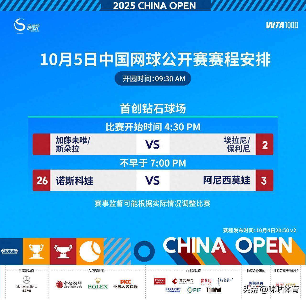 2025中国网球公开赛_中网赛程签表+直播比分一网打尽压轴大戏!中网收官日看点满满最大黑马能否掀翻“美国一姐”?