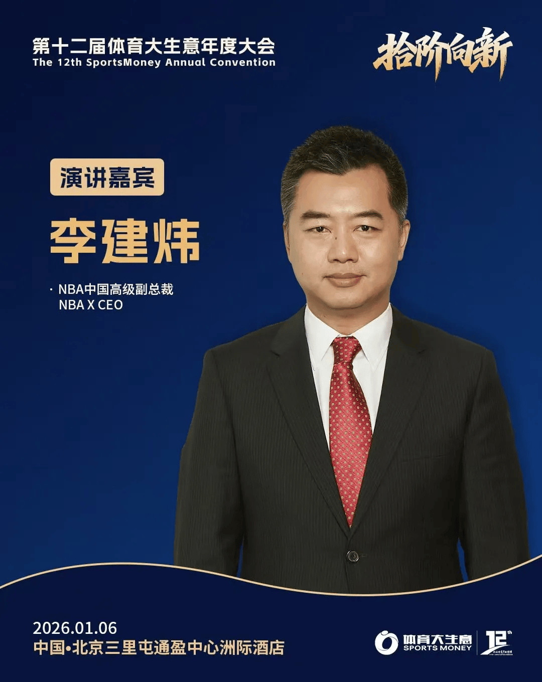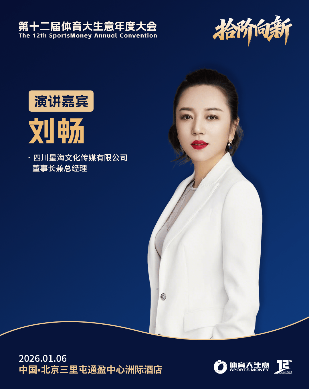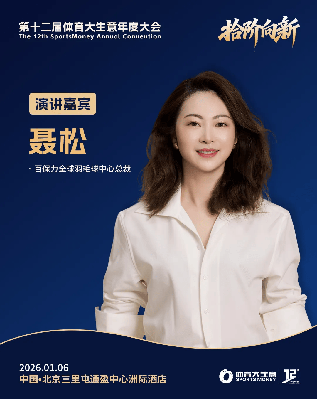 2026年1月6日,北京三里屯通盈中心洲际酒店,以“拾阶向新”为主题的第十二届体育大生意年度大会暨颁奖仪式,继续广邀行业同仁参与,一同回顾2025年中国体育产业的高光瞬间与荣誉时刻,同时聚焦探讨2026年体育产业的新契机、新议题以及新动向。