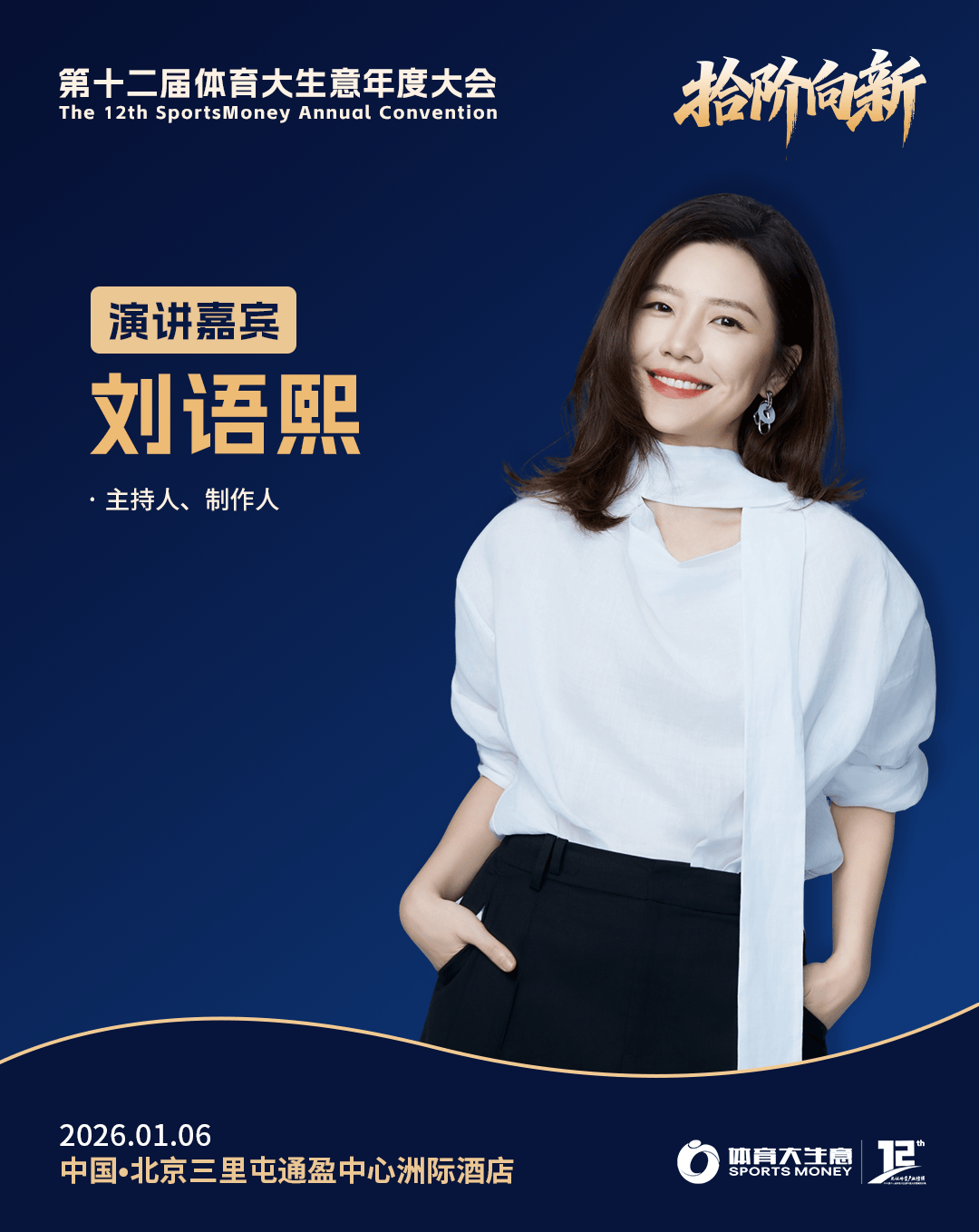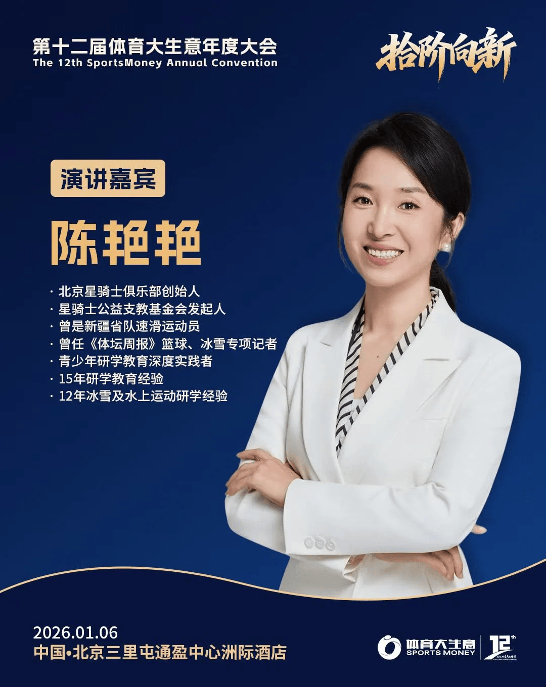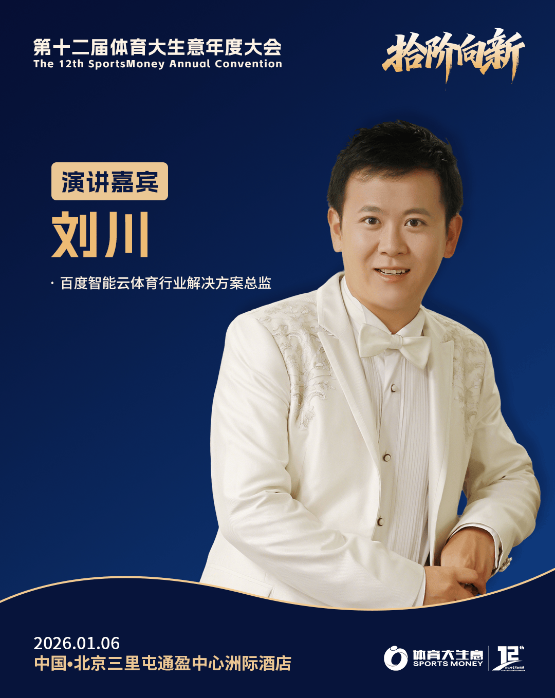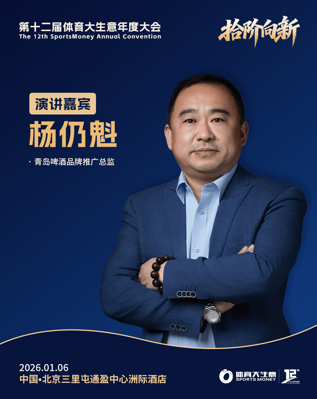 2026年1月6日,北京三里屯通盈中心洲际酒店,以“拾阶向新”为主题的第十二届体育大生意年度大会暨颁奖仪式,继续广邀行业同仁参与,一同回顾2025年中国体育产业的高光瞬间与荣誉时刻,同时聚焦探讨2026年体育产业的新契机、新议题以及新动向。